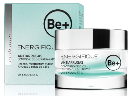 Be+ Antiarrugas Contorno de Ojos Reparador Intensivo rellena las arrugas gracias al complejo de péptidos que penetra en la piel formando una matriz tridimensional regenerativa que aumenta la función soporte entre células, actuando como estructura de sostén de la piel. Además, sus activos tensores alisan y disminuyen la profundidad de las arrugas. Su formulación “Soft Focus” refleja la luz disimulando los microrelieves y otras imperfecciones de la piel. Estudios clínicos bajo control dermatológico.