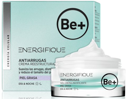 Las pieles grasas en la edad adulta se caracterizan por un exceso de producción de sebo, brillos, poros dilatados y pequeños granitos e imperfecciones. No se trata de acné juvenil, sino de pieles que requieren tratamientos cosméticos específicos seborreguladores matificantes que a su vez traten los signos de la edad. Be+ Antiarrugas Gel Crema Matificante gracias a su activo Cellderm 3D®, refuerza la estructura de fibras de colágeno y elastina, suaviza las arrugas y la pérdida de firmeza. Sus activos seborreguladores y matificantes regulan la secreción sebácea y disminuyen el tamaño