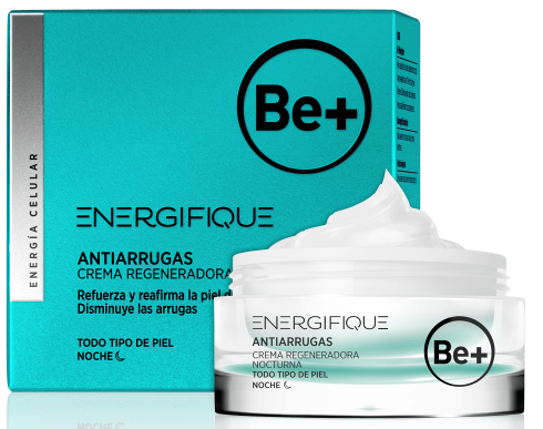 Cada noche, Be+ Antiarrugas Crema Regeneradora Nocturna disminuye las arrugas persistentes y refuerza la piel. Potencia la acción de los tratamientos cosméticos de día ya que también contiene un complejo de péptidos que penetra en la piel formando una matriz tridimensional regenerativa que aumenta la función soporte entre células, actuando como estructura de sostén de la piel. Su aplicación durante la noche activa las funciones celulares nocturnas lo que contribuye a una mayor regeneración y reconstrucción de la piel.