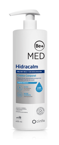 Be+ MED Hidracalm Crema repara la piel descamada y alivia la sensación de irritación y picor sin aportar sensación grasa. Fortalece la barrera cutánea aportando confort y suavidad. Mantiene la piel hidratada durante 24 horas (Corneometría).