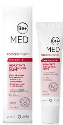Be+ MED ROJECESCONTROL Hidratante Protectora Forte descongestiona la piel y aporta una sensación general de confort. El 88% de los usuarios aprecia una disminución de la intensidad de los flushes y la rojez tras 2 meses de tratamiento.
