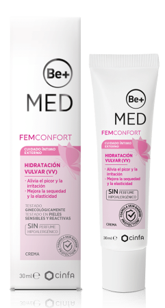 Be+ MED FEMCONFORT Hidratación Vulvar (VV) está especialmente indicada para combatir los signos de la sequedad vulvar debidos al uso de productos de higiene inadecuados, medicamentos, maternidad e inicio de menopausia. Ayuda a mantener el pH fisiológico. El 91% de las mujeres perciben mejora de los signos de irritación, ardor y picor.