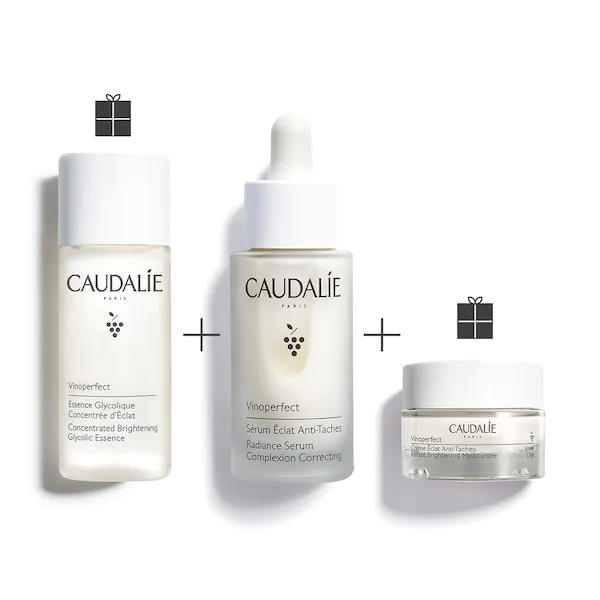 ¡Déjate seducir por nuestros 3 esenciales Vinoperfect : la rutina ideal para lucir una piel homogénea y luminosa!