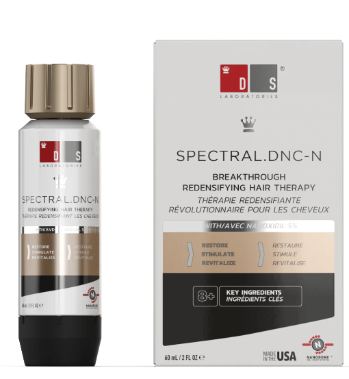 Spectral.DNC-N es el primer tratamiento tópico para evitar la caída del cabello que utiliza Nanoxidil 5%, una nueva y poderosa alternativa al minoxidil. Se trata de un novedoso ingrediente de gran eficacia, bajo peso molecular y sin efectos secundarios conocidos. Proporciona a hombres y mujeres una excelente alternativa contra la caída del cabello. En múltiples estudios clínicos se ha demostrado que Spectral.DNC-N favorece el crecimiento del cabello y evita su caída mediante la apertura de canales de iones dentro de las células; elimina la DHT (dihidrotestosterona); evita la fibrosis perifolicular; aporta efectos antioxidantes; prolonga la fase anágena de los folículos pilosos; aumenta la expresión del factor de crecimiento endotelial vascular; suprime las isoenzimas de proteína quinasa C (PKC) y bloquea la inflamación crónica.