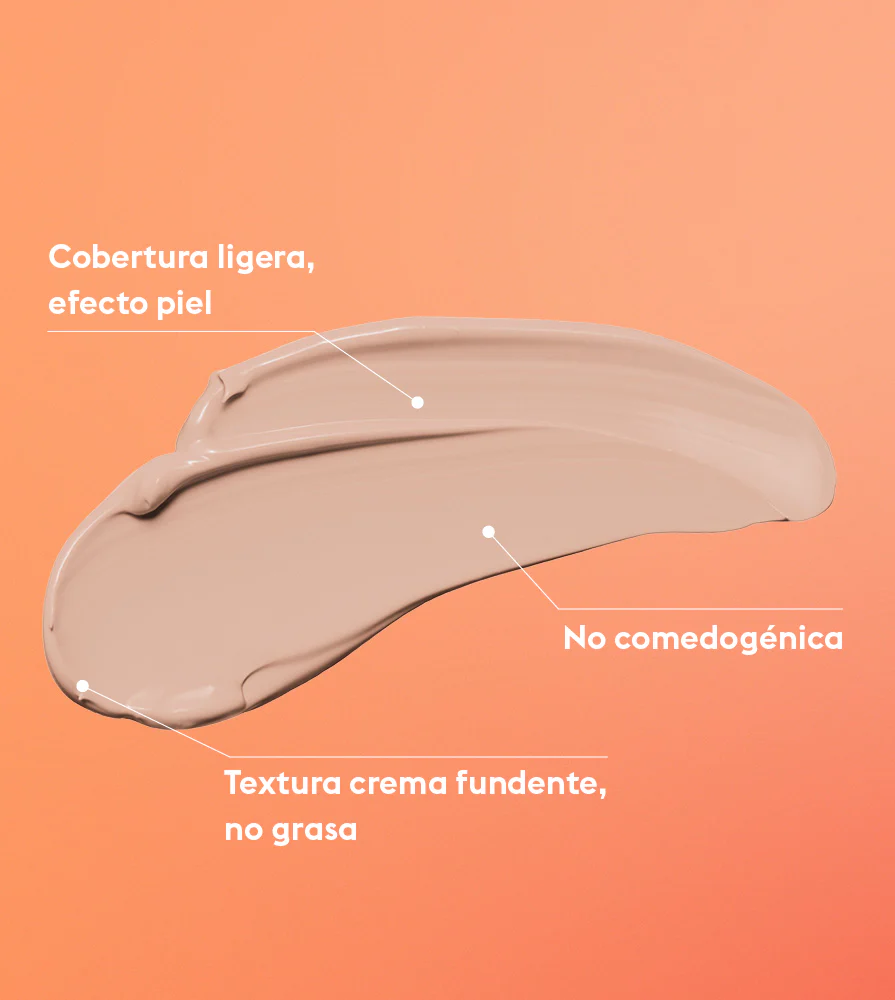 Cobertura ligera y acabado natural. No comedogénico.