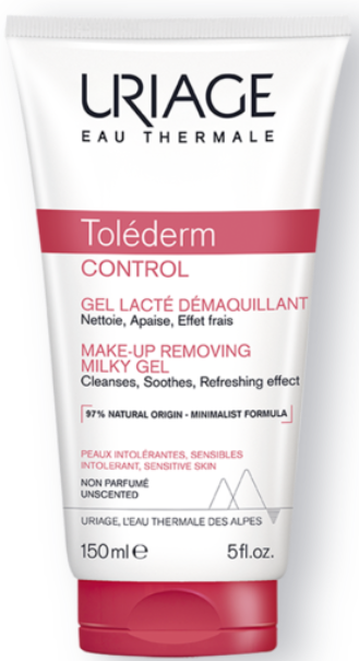 Con una fórmula minimalista, el gel desmaquillante Uriage de la gama Toléderm limpia y desmaquilla suavemente el rostro y los ojos. Este nuevo producto ha sido especialmente diseñado para las pieles más sensibles, incluidas las intolerantes, con antecedentes de alergias, etc. El producto calma y alivia la piel en un solo paso. Esta fórmula no tiene perfume, contiene un 97% de ingredientes de origen natural y es apta para los usuarios de lentes de contacto.